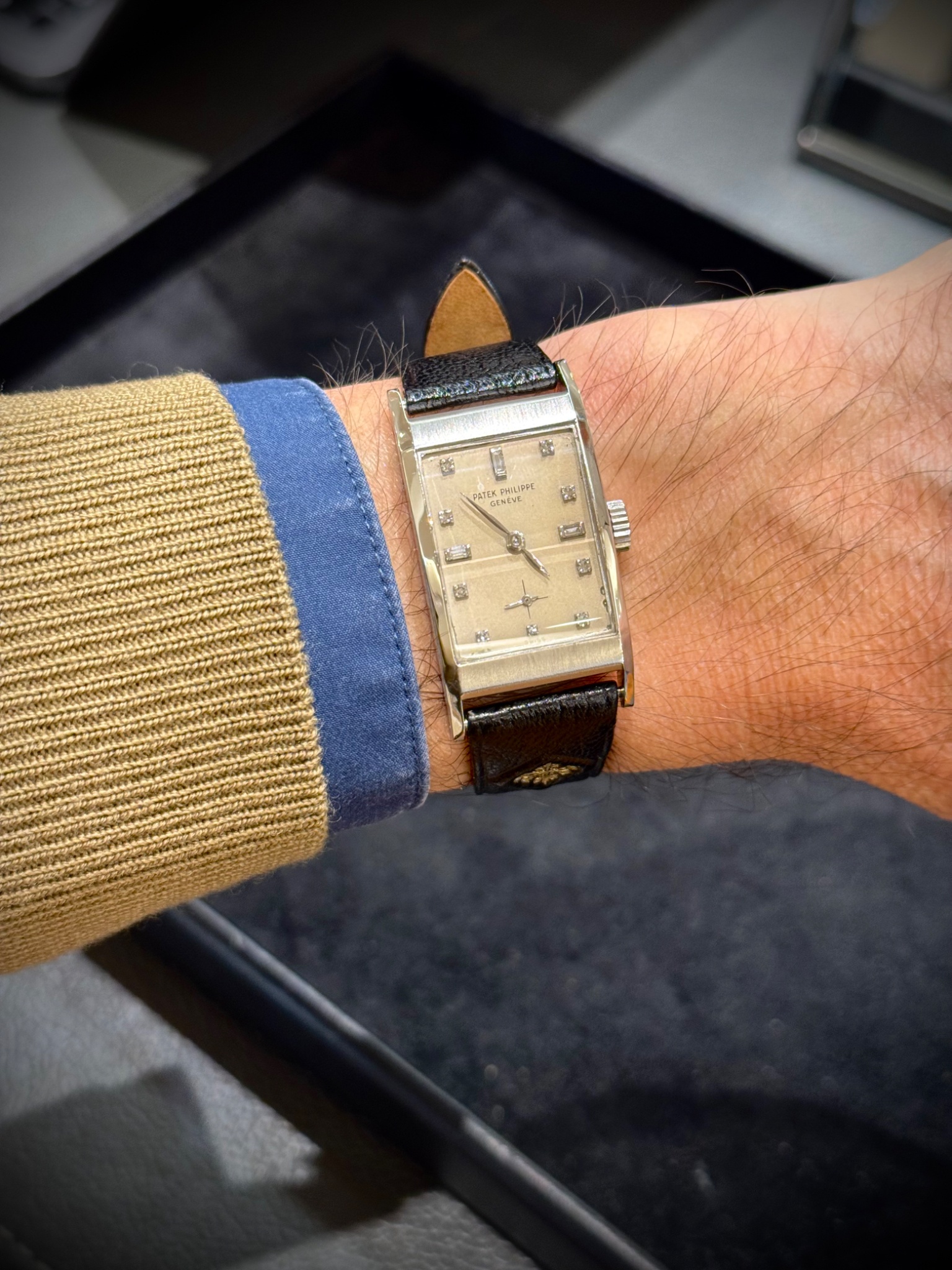 A few months ago, even though I suspected I wouldn't like it, I tried on this Patek Philippe ref. 2461 with a platinum case and diamond indexes (powered by cal. 9-90).