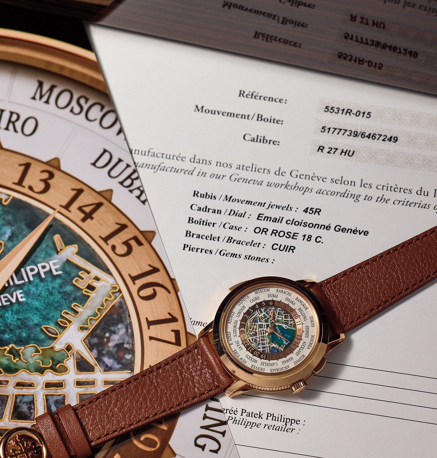 Introduced in 2017 at Patek Philippe’s Art of Watches Grand Exhibition in New York, the original release of the World Time Minute Repeater ref. 5531 was a limited edition of 10 pieces, split between two cloisonné enamel dial variants: