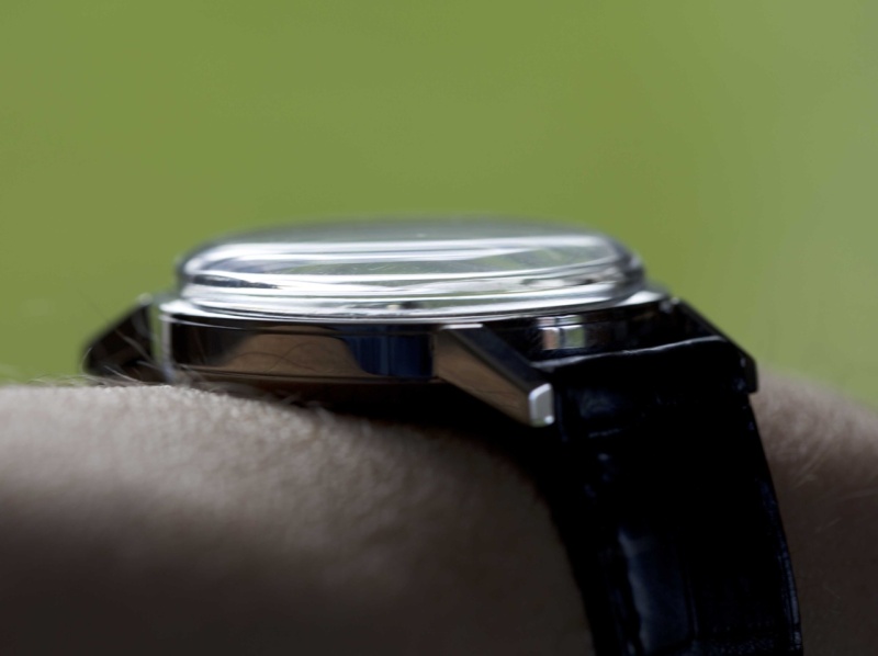 But what really made this watch special for me was the nature of the dial. It has a certain pearl-like finish that captures the light in such a special way.The layout of the dial could not be simpler. No numerals. No date. Incredibly simple. Incredibly pure.