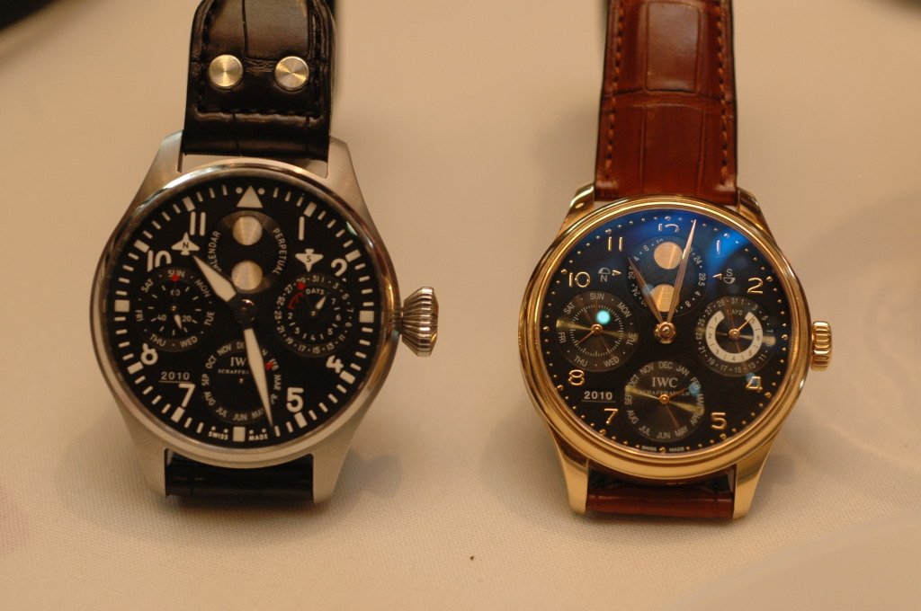On the left is a very special IWC Big Pilot Perpetual "Bucherer" in steel. Limited Edition of 70 pieces.