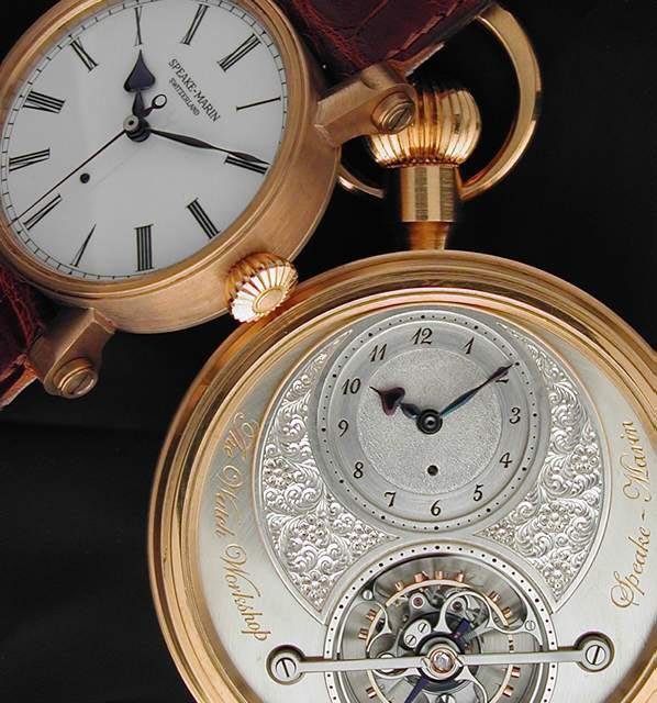 Fabulous work! Peter is using an ETA 2824, which is modified (automatic system) and finished (eventually) to his standards. It should be remembered that Peter makes the hands (I particularly like the seconds hand), case and engine turned dial (I'm not sure who did his enamel dials but they are lovely) for both his pocket and wrist watches. In fact, most of the pocket watch is made by Peter's skilled hands.