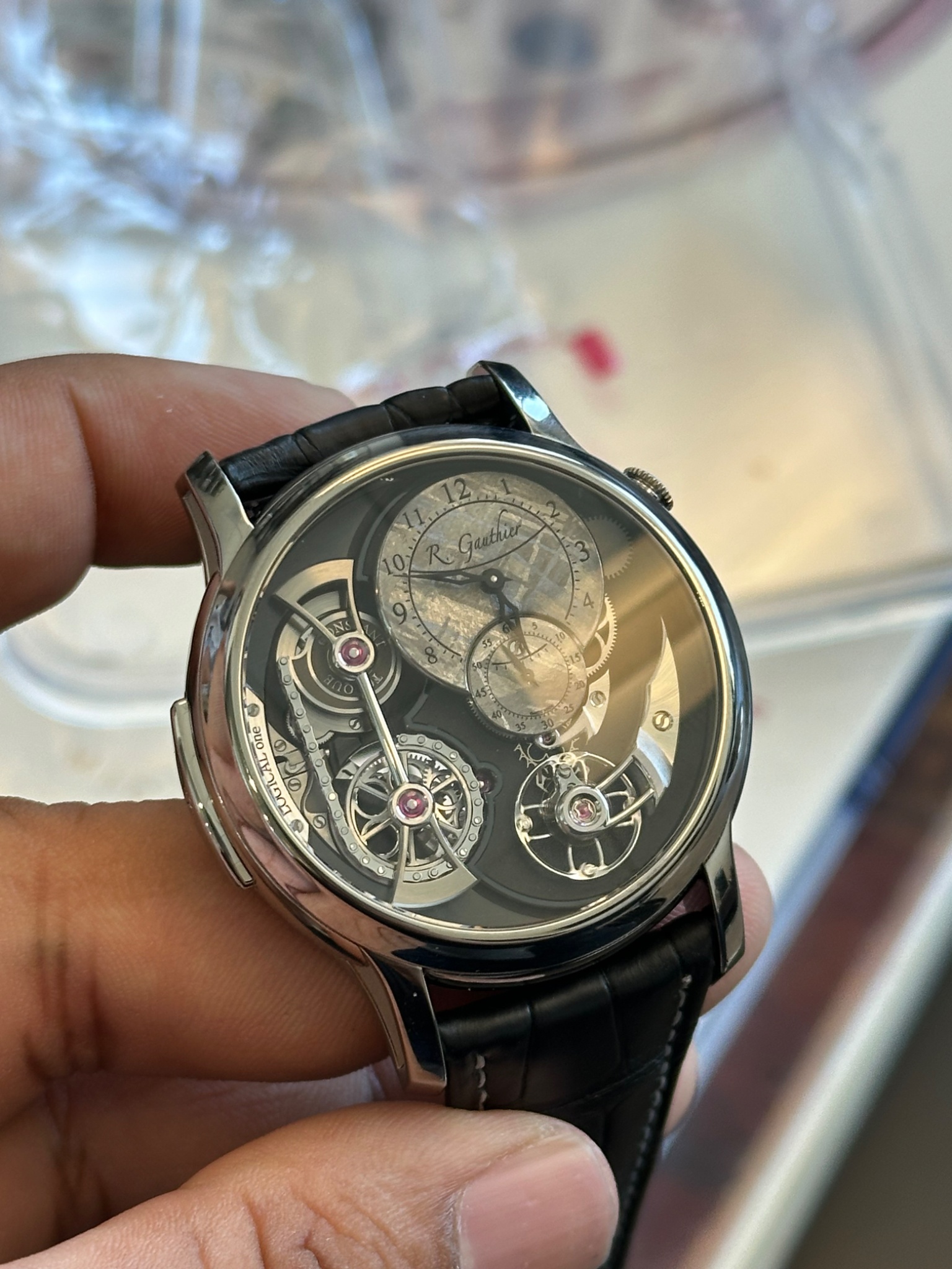 First of all, Steven Rostovsky is a gentlemen and a great guy, I bought two watches from him, and I really enjoyed the communication and the transaction. He loves watches! Second of all... that Romain Gauthier may be the first watch ever where I would say...