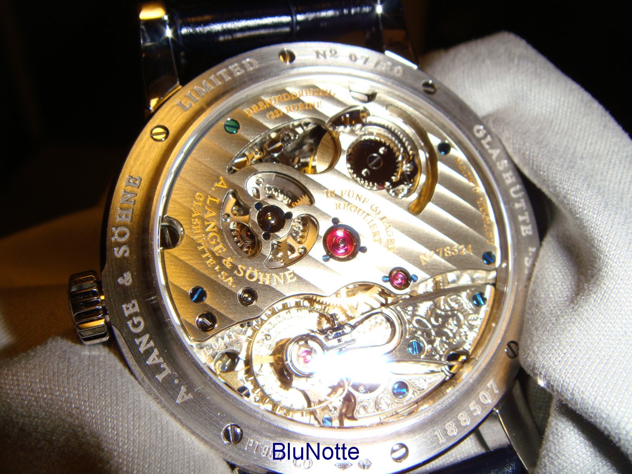 And after 5 hours of working, ( with me watching him all the time, which i have to tell you knowing me could give any other person great nervousness, but not Mr. Kosugi, who is the utmost best in what he does, and i call him the world's only "Platinum salesman" by the way), he returned to me a so very much more PERFECT Richard Lange Pour le Merite! I inspected it with my 10x and 30x loupe. Passed with flying colours.