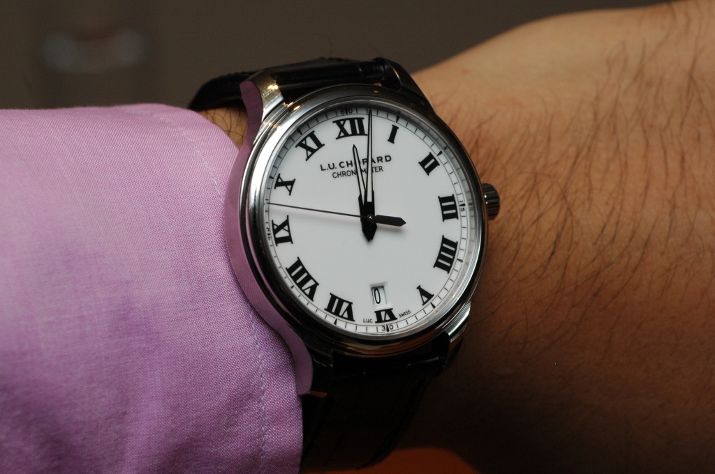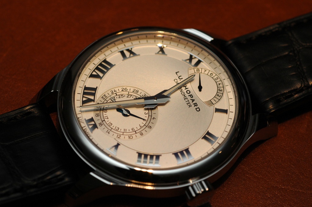 Beautiful watch, especially the one with the porcelain-like dial. My only minor complaint is the stiffness and the thickness of the newly designed leather strap, which takes a way some of the elegance of the piece. I hope Chopard can put a soft and thinner alligator band on it, upon request.