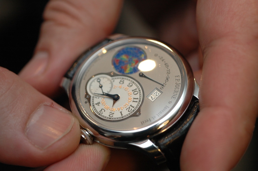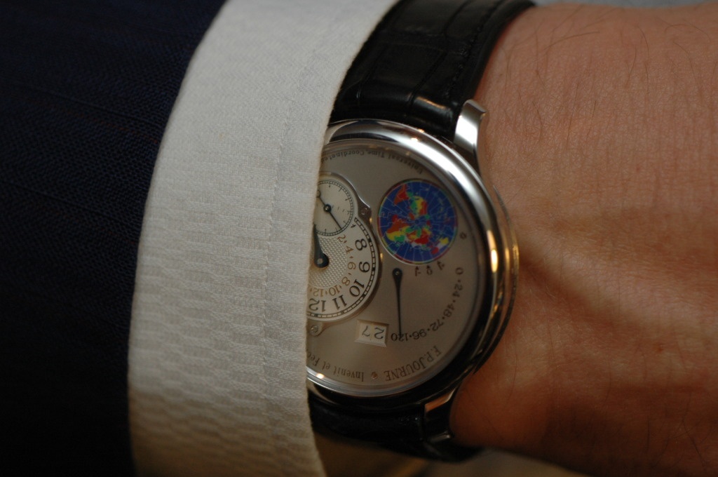 (Small interruption). At this moment, Mr. FP Journe stopped by to say hi to Mr. Vila and he showed us his new piece - the Octa UTC.