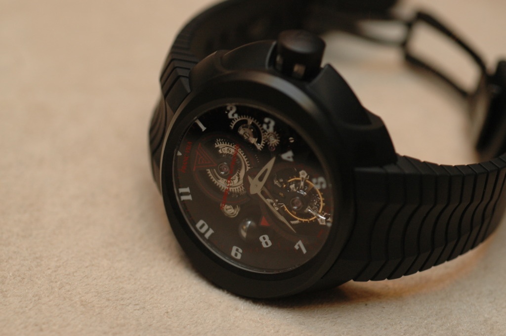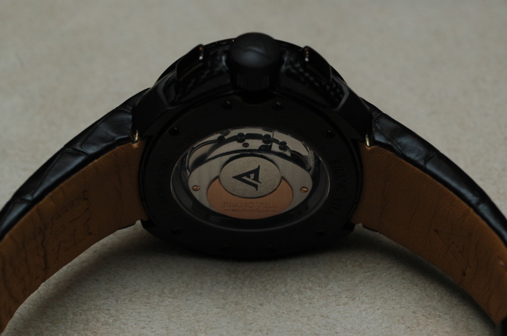 Besides the unconventional and somewhat provocative design, the quality of the case and dial are extremely good by both traditional and modern standards! The high polish and satin finishings of the case, the construction of the deployant buckle, the workmanship of the dial, the feel and the operations of the crown all have superb quality. According to Franc Vila, no expense was spared, and the entry level pieces have the same quality of finishing and craftmanship of its high complications.