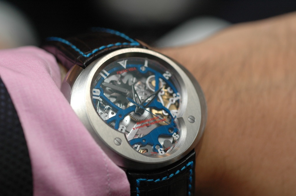 The open-work 5-minute repeater "SuperSonic" . Quality of the sound is crisp. I especially love the touch of color.