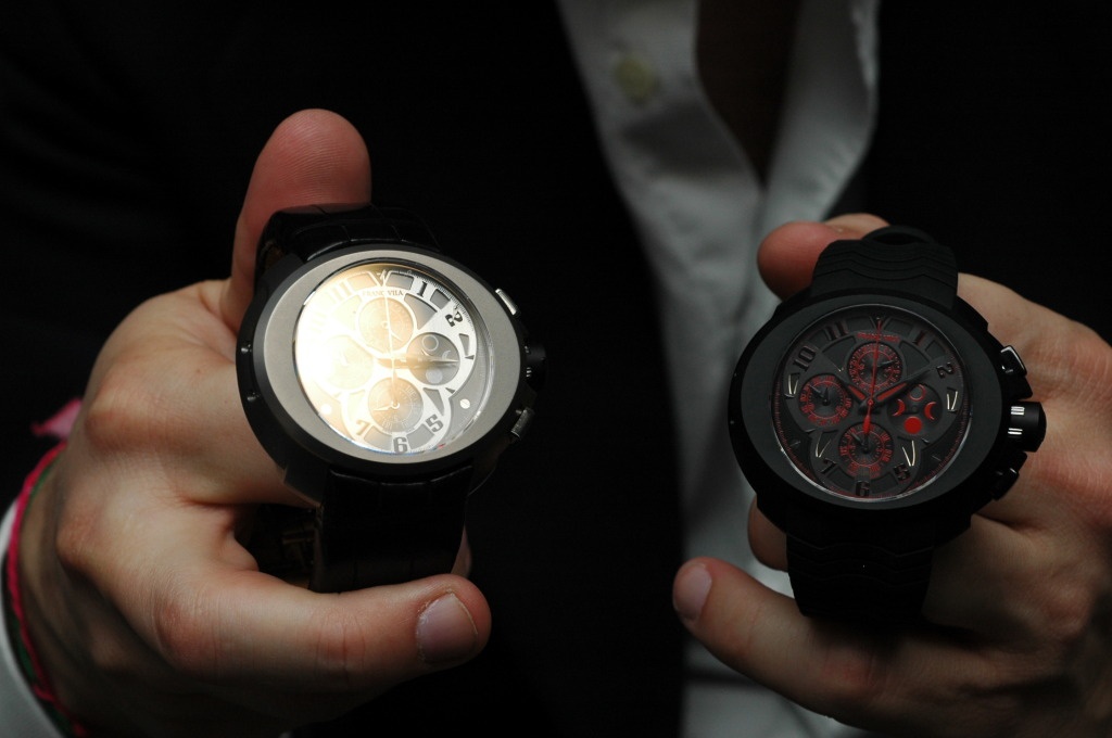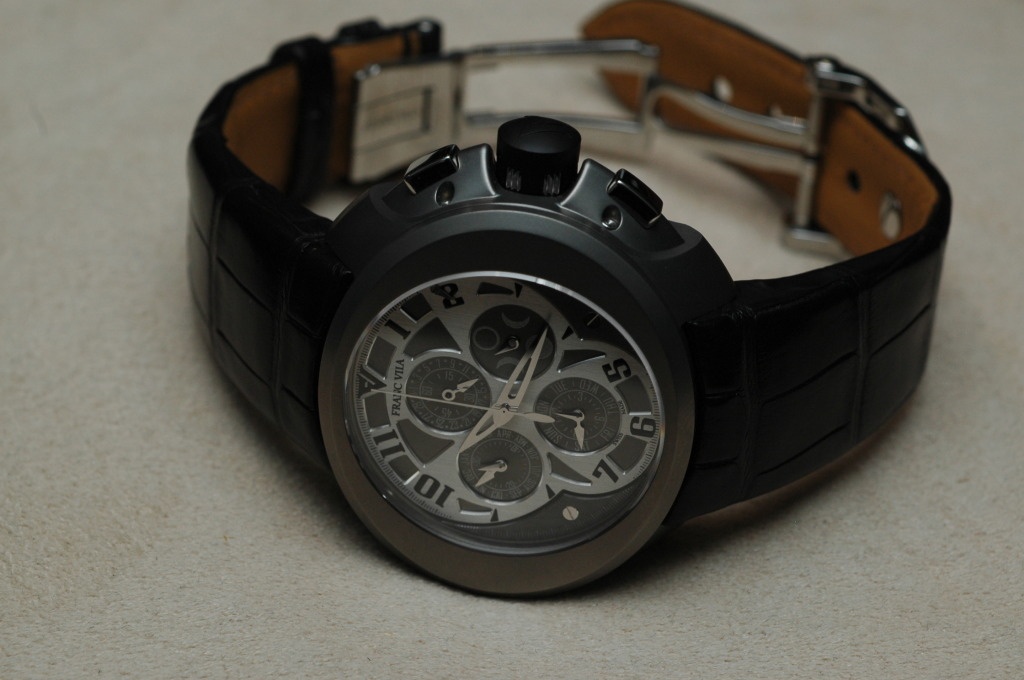 The Complete Calendar Chrono Intrepido (on the left) with NanoTube Titanium case, giving it a naturally dark and warm color. (Again, it is a protoype)