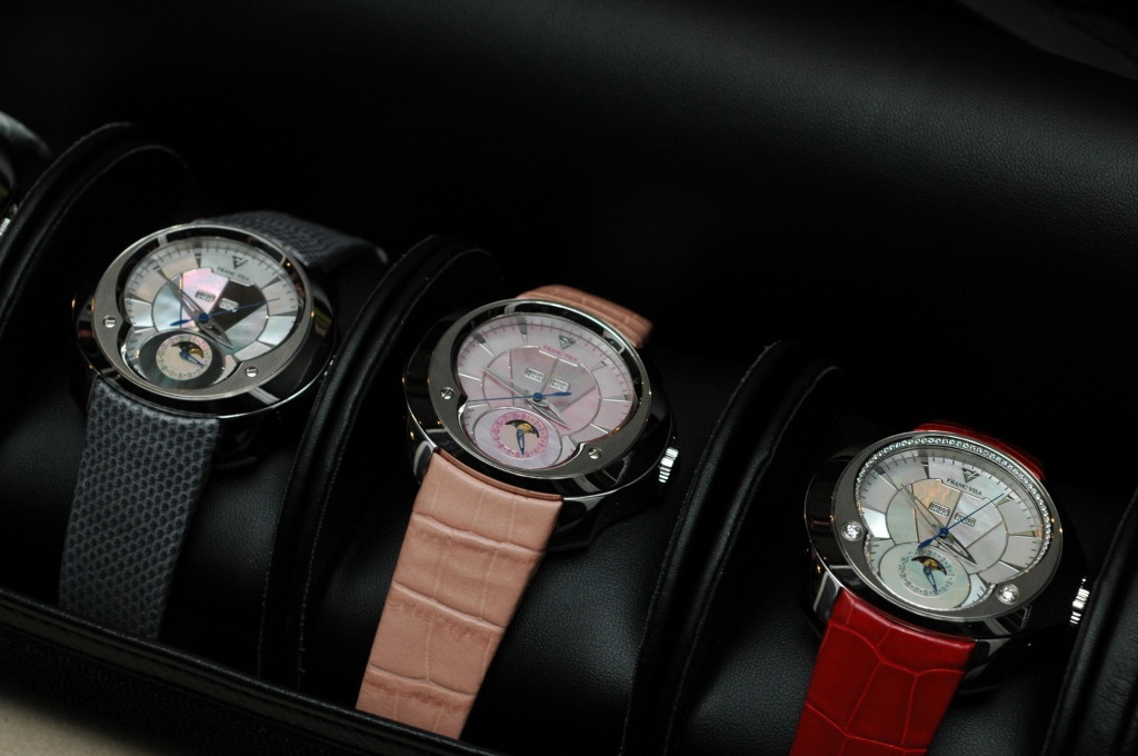 Continuing on... presenting the watches for ladies. Following the same design and made to the same standard as the men's pieces. I especially like the pieces with faceted mother of pearl dials in various colors.