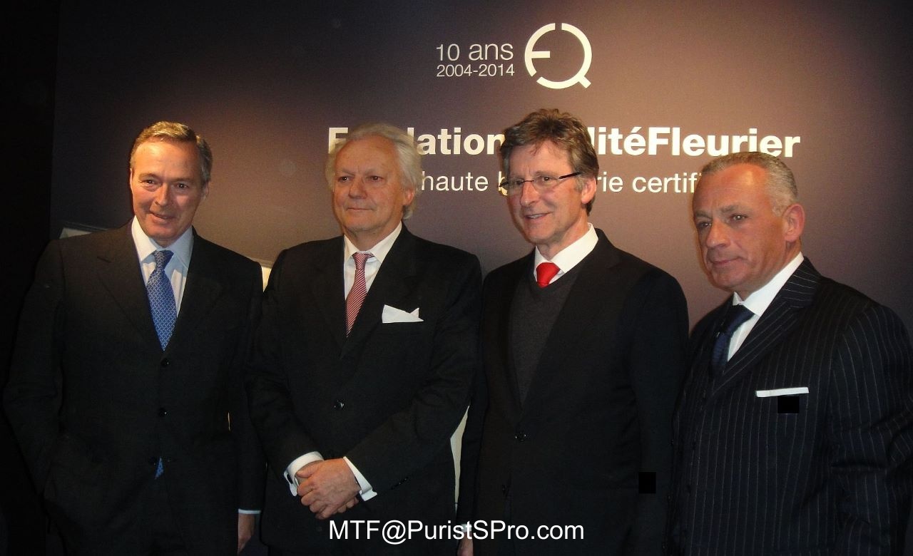 Left to Right: Mr Scheufele, co-president of Chopard; Maître Hofner, President of the Fleurier Quality Foundation; Mr Parmigiani, President of Parmigiani Fleurier and Mr Raffy, Owner of Bovet Fleurier.