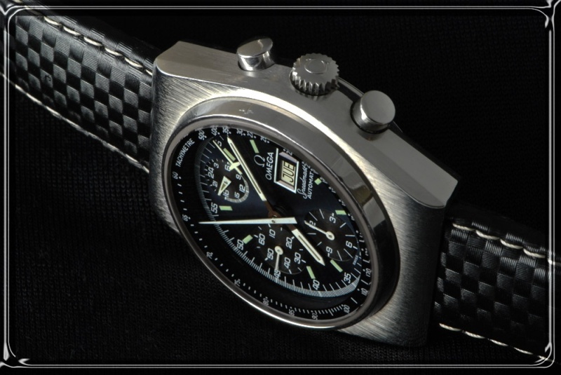 Picked this up recently, and have been enjoying it a lot. I had debated about the Mark 4 vs. 4.5 - the Mark 4 has more "speedy DNA" with the layout of the three subdials and the Omega writing at the 12; but this one was irresistable. Came on a bracelet, which was overpolished and somewhat loose. The Dimodell strap is a good match, I think...
