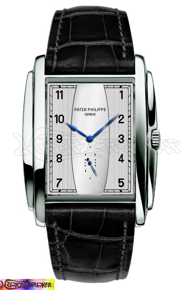 First of all, I've divided the dial in two sectors: the central part has a guilloché finish, starting from the hands axis, while the dial sides have a vertical brushed finish. The shape of the guilloché sector wants to remind the case one. The next step were the blued hands and a specific font (created by me) for the stamped numbers; the version I like the most is without 12 and 6. The chemin-de-fer minute ring isn't changed, but it's interrupted by the guillochage; please, note that the two rings are "closed" by a fine line. Next step: the small seconds sub-dial reminds - again - the case shape. Last touch: a very dark grey crocodile strap with grey stiching.