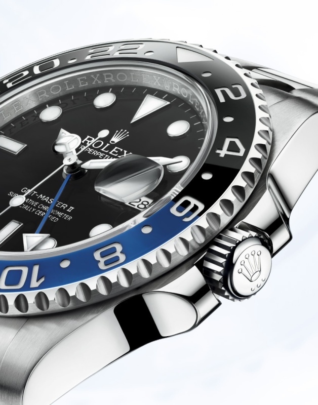 The problem for Rolex has been that the Cerachrom bezel doesn’t lend itself too readily to two-tone variation. The nature of the manufacture process makes it extremely difficult to create a two-tone outcome. However, Rolex managed to do so, and in doing so created another patent. Being formed of just one single piece of Cerachrom, the initial material starts out as completely blue. During the earlier stages of production, the Cerachrom is permeable, and so black can be added to it to create a two-tone bezel. Many people have asked if it is possible to create a blue/red bezel. Never say never, especially to Rolex innovators, but since both blue and red are primary colours, it would appear extremely difficult to see how this combination could be achieved. One could, conceivably, see a red Cerachrom that subsequently has black added to it to create a red/black variant, but it seems logical to me to argue that black will always need to be at least one of the two colours. Throughout its vintage history, we have seen various colour combinations on GMTs, but there has never been a black & blue bezel until the release of the GMT Master 2 in 2013. I think it is fitting that this modern marvel has its uniqueness.