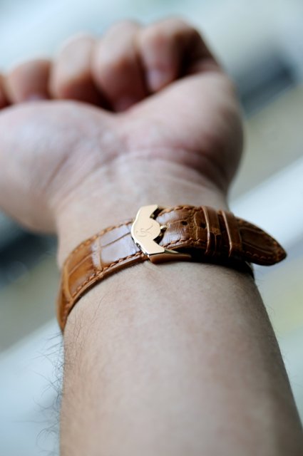 I selected the rose gold with champagne dial primarily for the gilt frost finishing that Romain applies to this version. I also think that the champagne dial matches up nicely with the rose gold case.