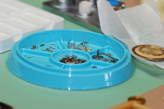 Assembled movement, gold plated but before casing.