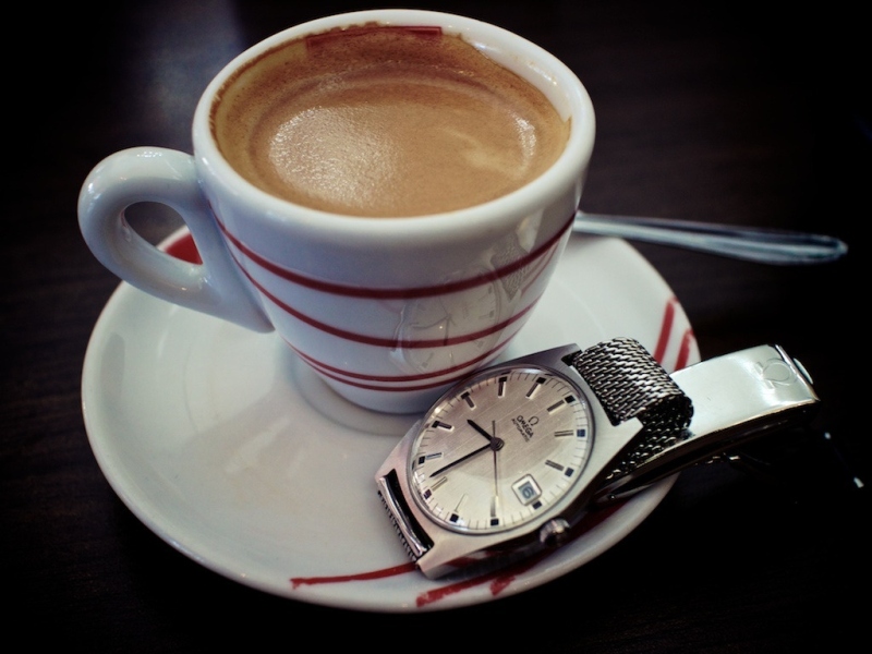 1) With my cup of espresso, as it must be.