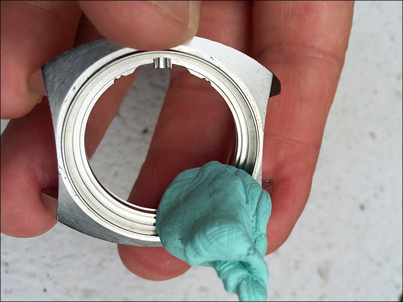 Even though it had been in the ultrasonic tank for an hour last night, I cleaned up the case's bezel edges with a fine file, then with Rodico (a cleaning putty).