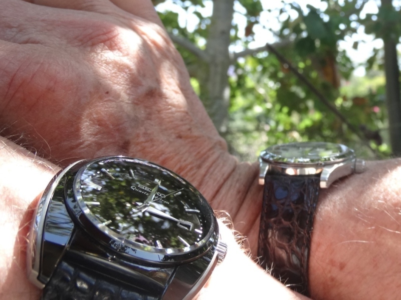 One Grand Seiko, one (all but) regular Seiko. Both quartz, tuned and chosen to record time as well as any Seiko can.