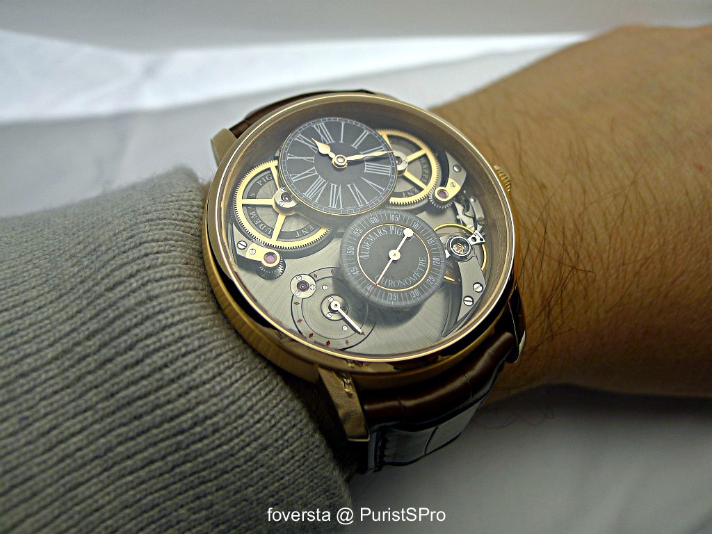 I would like to finish my report with one of my all-time favourite AP watches: the ChronAP. I know that it is a really loved baby by Giulio Papi because it contains a lot of his chronometric ideas. This watch, due to its movement, its design, its frequency (6hz) has a special place in the collection. This year a PG version was presented and the new case, in addition to the movement finishings, gives a bright atmosphere to the ChronAP making it even more impressive than it was before. A true beauty and a superlative watch.