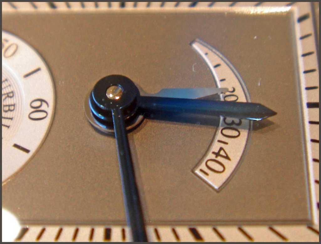 I appreciate a lot the symetrical disposition of the dial with the Power Reserve indicator at 12 and the little second at 6, which give some curves to the whole rectangular design...