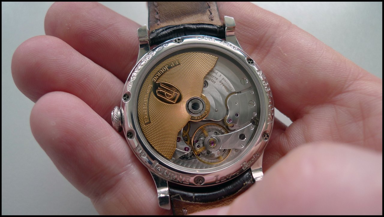 Chronometry is important to me and I keep a close eye on the ‘performance’ of my watches. Although not COSC certified, I like the fact that FPJ focuses on chronometry with the large (10.1mm), high-inertia, 4-arm balance poised in 5 positions using inertia blocks (and beating at a leisurely 21,600vph or 3Hz) as well as the stable (850g of) torque already mentioned. This focus is carried through all Journe timepieces. In fact in the first week the RdM was on my wrist, it deviated from the reference time by only 2 seconds and demonstrated no difference in accuracy on or off the wrist or in different resting positions; remarkable in my experience.