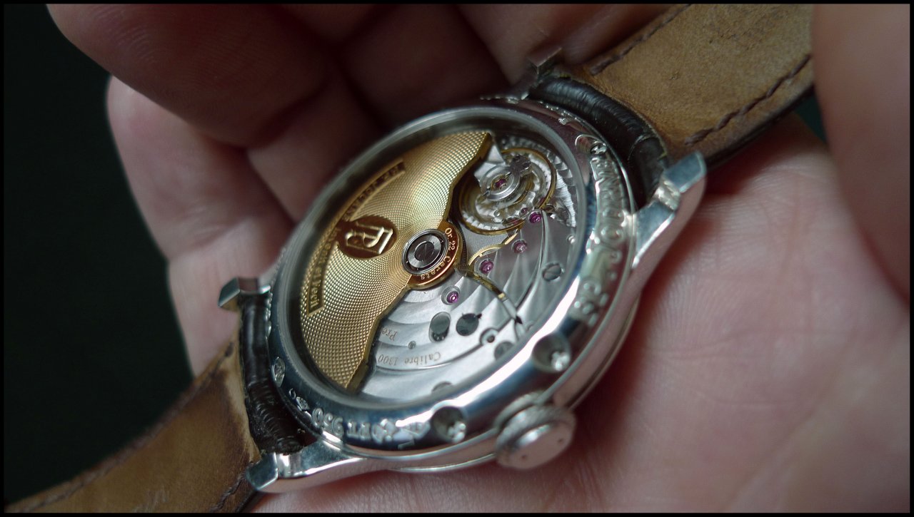 The case itself is simple and elegant and I like the offset dial to the right of the main dial. The time can be read with the watch discretely peeking out from under a cuff. The Glashütte Original and A. Lange & Söhne watches (until the automatic Lange 1) never felt quite right in this respect.