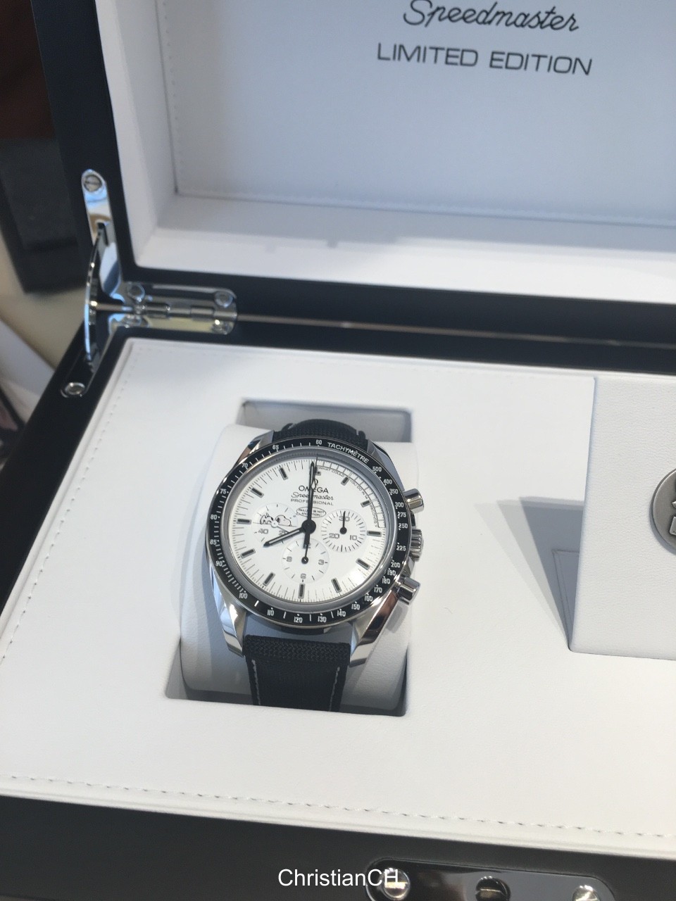 Other members received the watch last year so I don't want to bore you with a lot of repetitions. it is a very unique speedmaster for several reason: the dial is white and