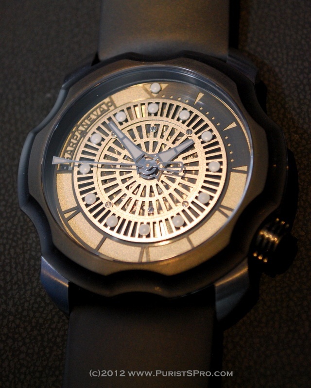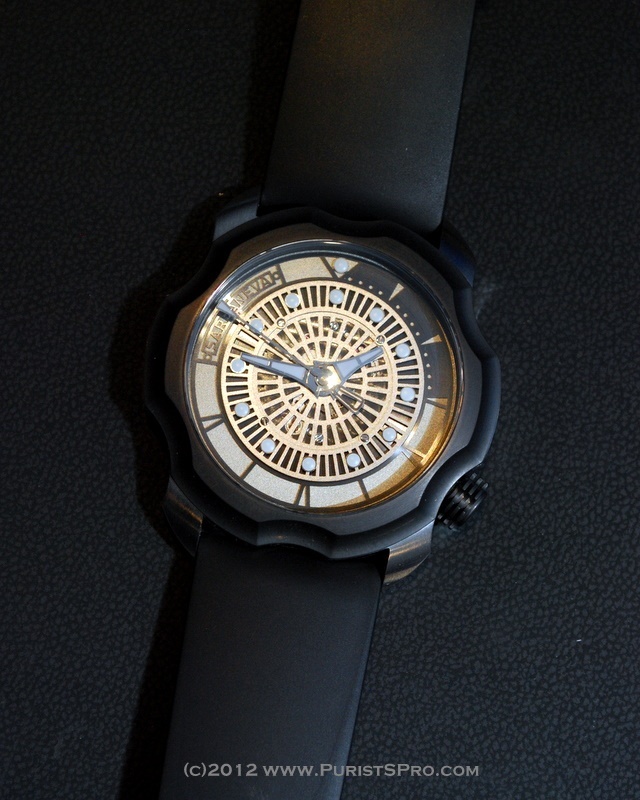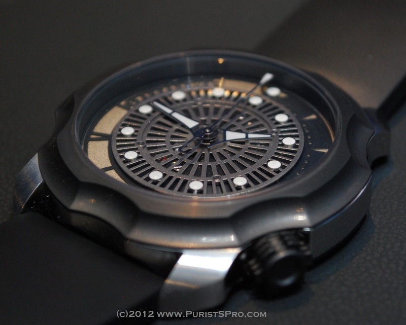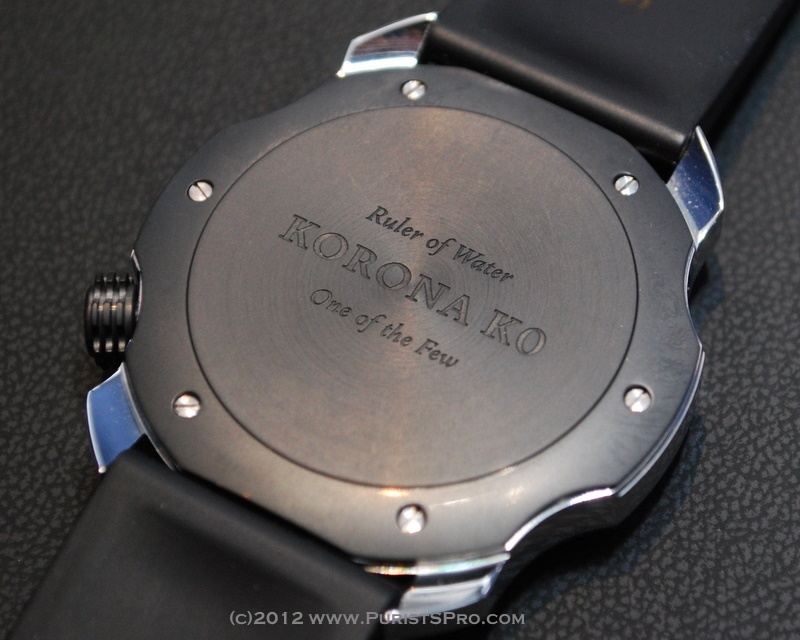 This year Stepan is showing his new Korona K0 "sport". In a titanium case with a typically Sarpaneva form this diving watch has an internal rotating bezel which is turned, unidrectionally, with the crown in its first position.