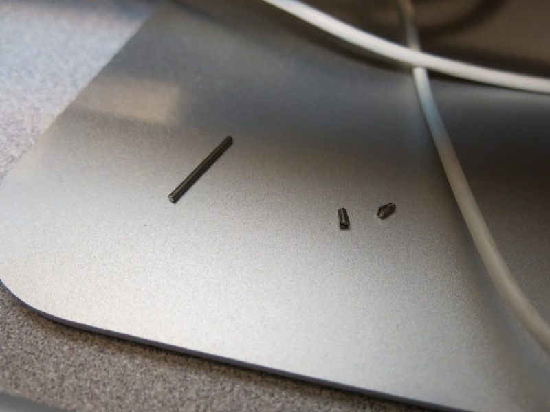 For attaching the new strap, you have to hold it against the case and then feed the bar through. This photo shows the bar partially inserted without the strap; the bar needs to be out of the way to align the strap and then gets pushed in.