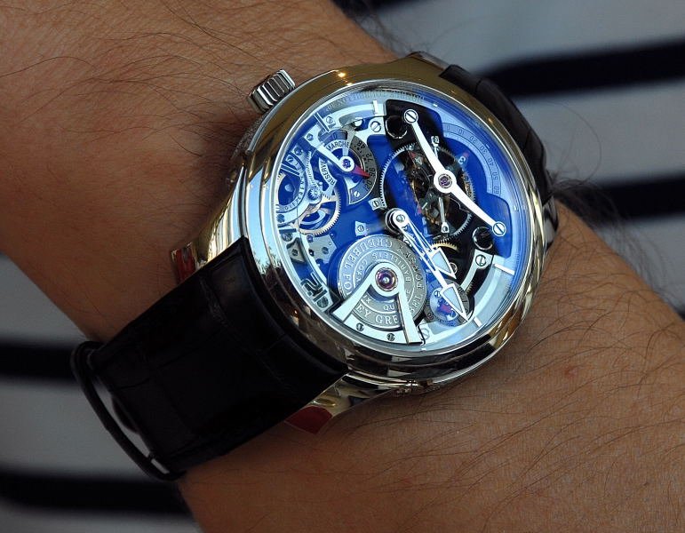 While the Greubel Forsey philosophy and the watches they manufacture are firmly aimed at the future; the research and development of accurate watches. The finishing and methods find their roots in the past. The same care and attention that was lavished on the most complicated hand finished pieces of yesteryear is still apparent on the Greubel Forsey watches. It is in the small details that a hand made watch looks almost machine made. But what separates the Greubel Forsey watches from others is the use of finishing as an aspect of the watch, rather than just a part of the watch. The new ‘Technique’ series, seen on Robert’s wrist that morning is both a show case for the innovations, but also for finishing at every level of the component parts that comprise a Greubel Forsey watch.