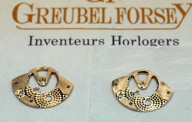 Every detail of a Greubel Forsey watch receives this attention to finishing. The finishing, while a fundamental element of the watch, is not so much an aim in itself, it is also to demonstrate and keep traditional watchmaking finishing alive and well. Every component, however small, is finished to the same exacting standard. Below, a series of before and after pieces from the 30 degree Double Tourbillon, and from the Technique:
