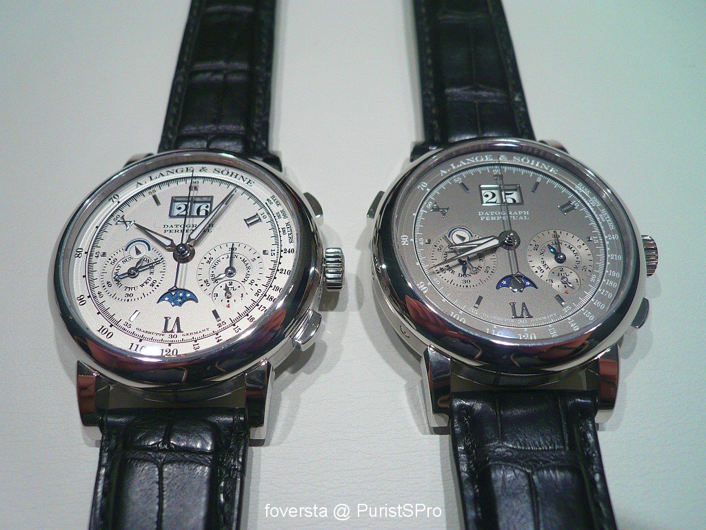 Between the Platinum and the White Gold versions, the last one is without any doubt my favourite thanks to its stunning grey dial. I find it more subtle and it enhances (well, that's my point of view !) the readability of the watch. It is quite rare than in the Lange collection I prefer the WG version to the Platinum one but here it is the case.