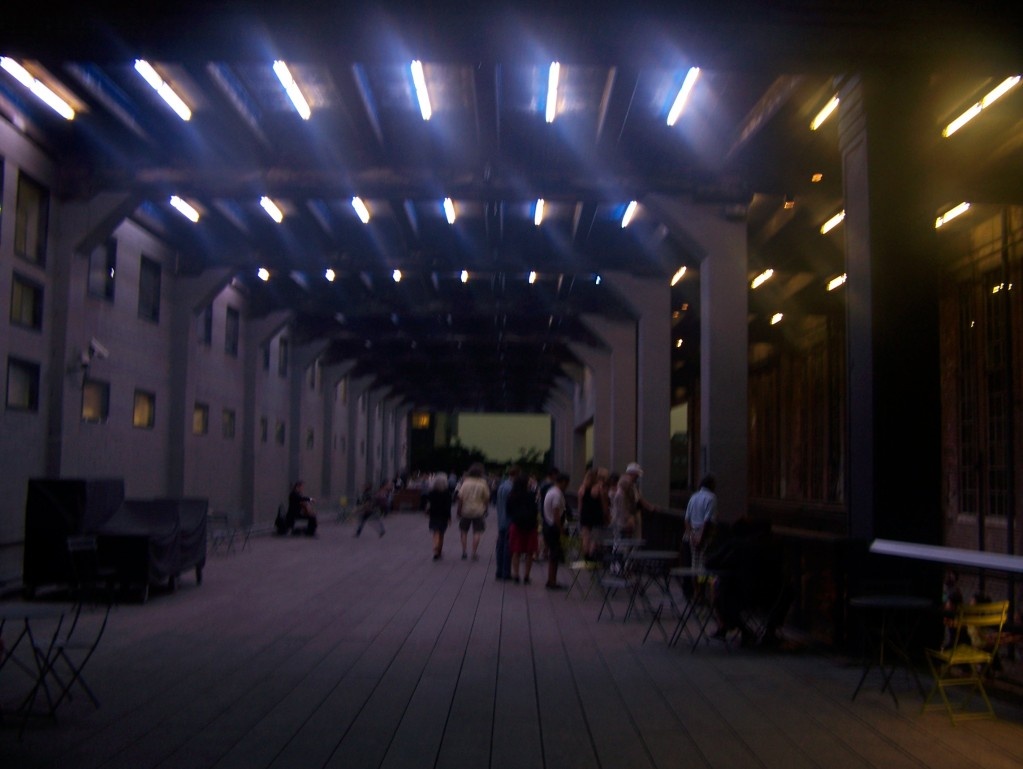 There are places where the park cuts through buildings, creating places to eat, exercise and even see films...