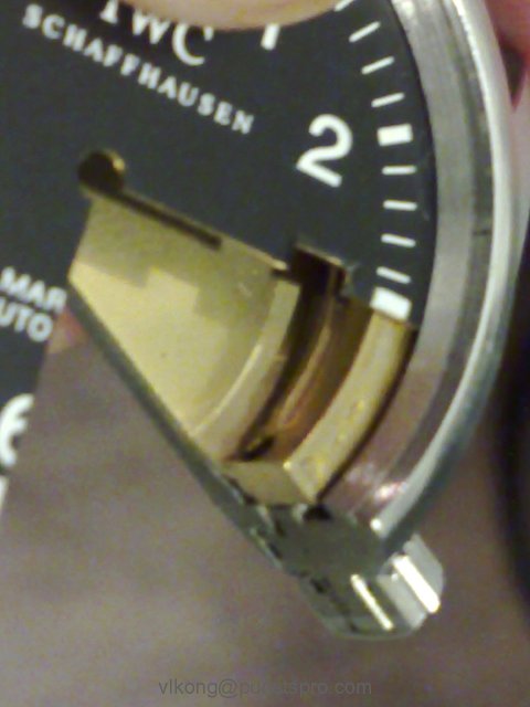 5) Flipped over to the bottom view, notice the dial paint is chipped at the edge of the cut-out?