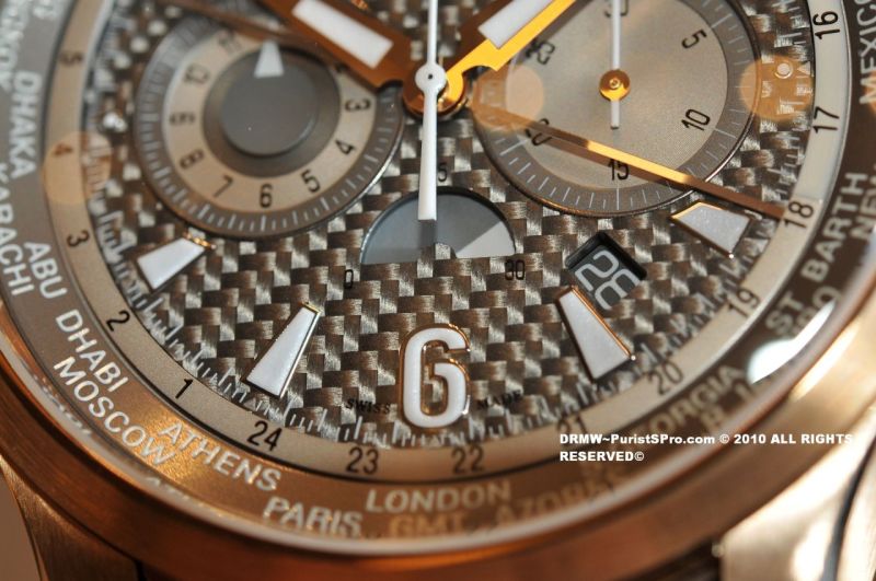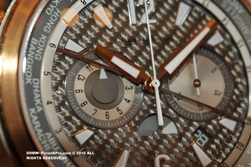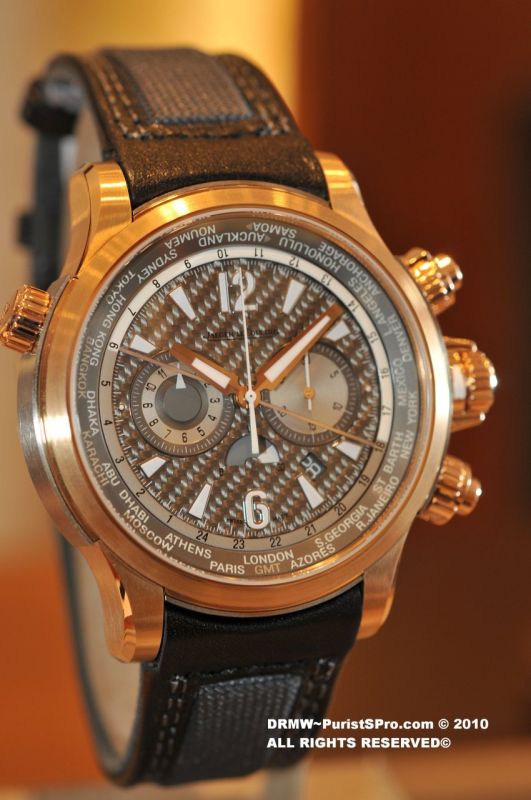 I just returned from a happy outing taking photos of the new arrivals at the friendly neighborhood JLC Beverly Hills Boutique. Let's start with something that really caught my eye, a JLC Master Compressor Extreme World Chronograph with a Texalium dial! My pics don't do it justice as the case has a really nice light shade of Pink Gold and a beautifully textured dial. This piece is one of those that you must see in person.