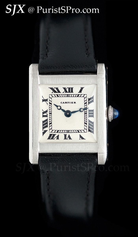 This is not strictly a Tank due to the case shape; the lugs have a sharp downward curve when viewed from the side. This is one of my favourites because it has an outstanding movement and also it is quite modern in size due to the large calibre.