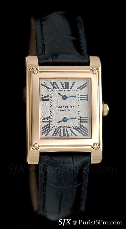 Part of the Collection Privee Cartier Paris, this Tank displays two independent time zones.