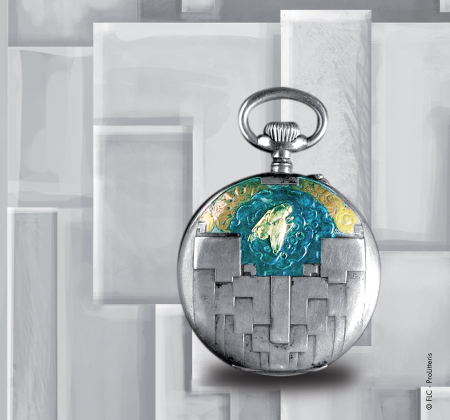 The dial design based upon one of Le Corbusier’s early work as sculpture and engraver. A pocket watch engraved by Le Corbusier.
