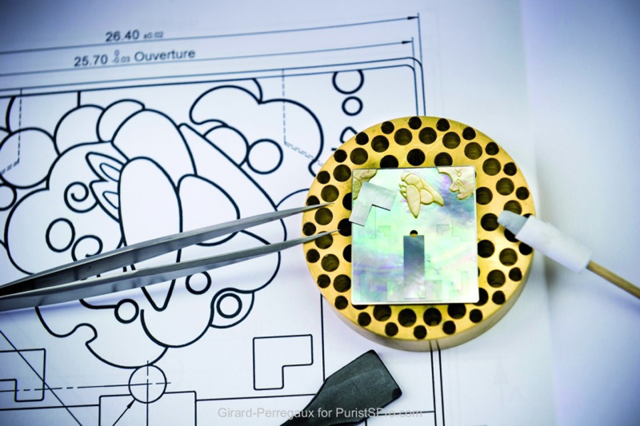 La Chaux-de-Founds: Inlaid Mother of pearl dial.