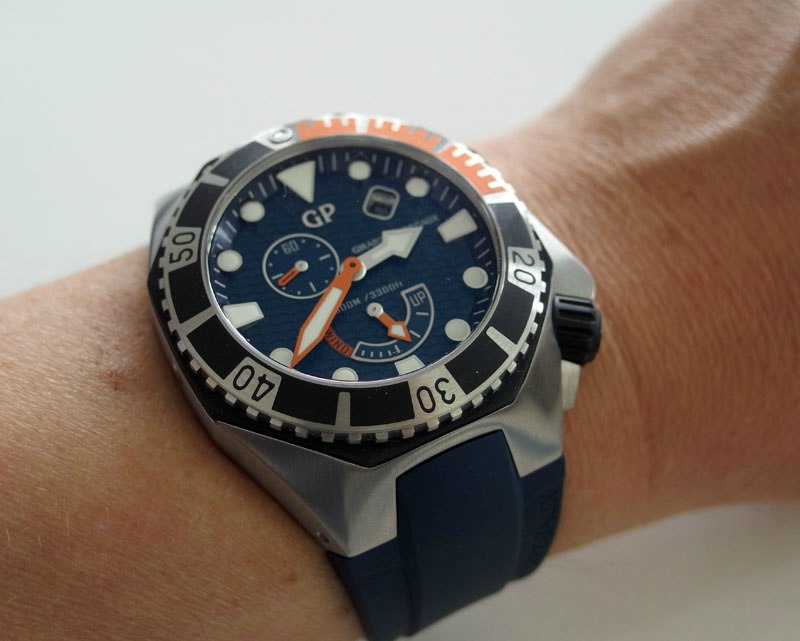 Then we moved on to the Traveller. The new model frankly did not convince me when it came out. The new lug design and the increased size, but this was one watch that surprised me the most as in real this is super-nice, well fitting my wrist and really really beautiful with a lot of depth on the dials.