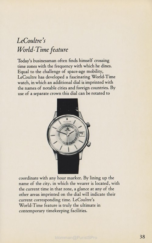 1969: World-Time feature, LeCoultre.