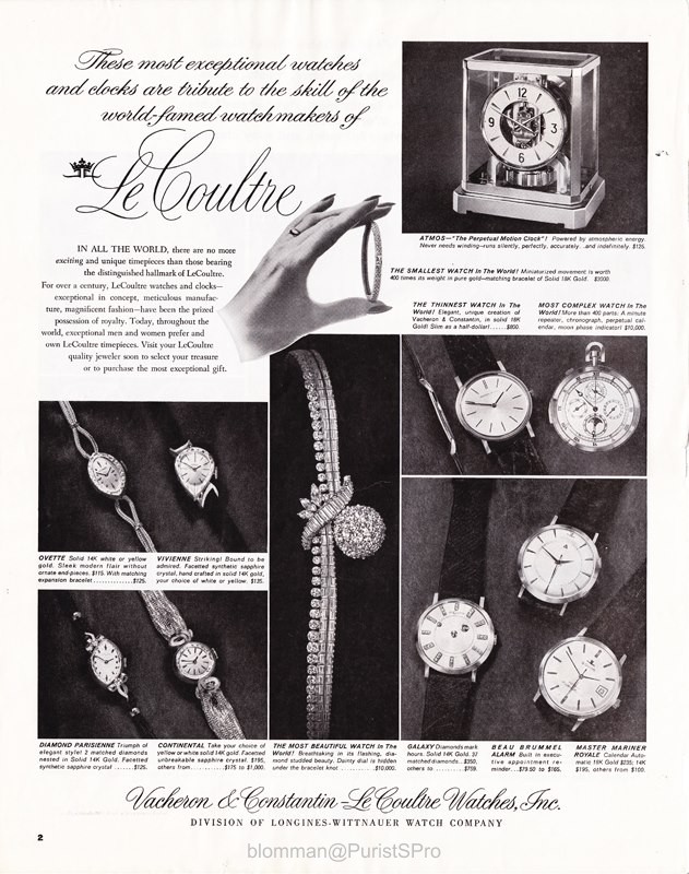 While they in Europe were promoted as Jaeger-LeCoultre and all the other brands were promoted by themselves, in America they all teamed up under one umbrella.