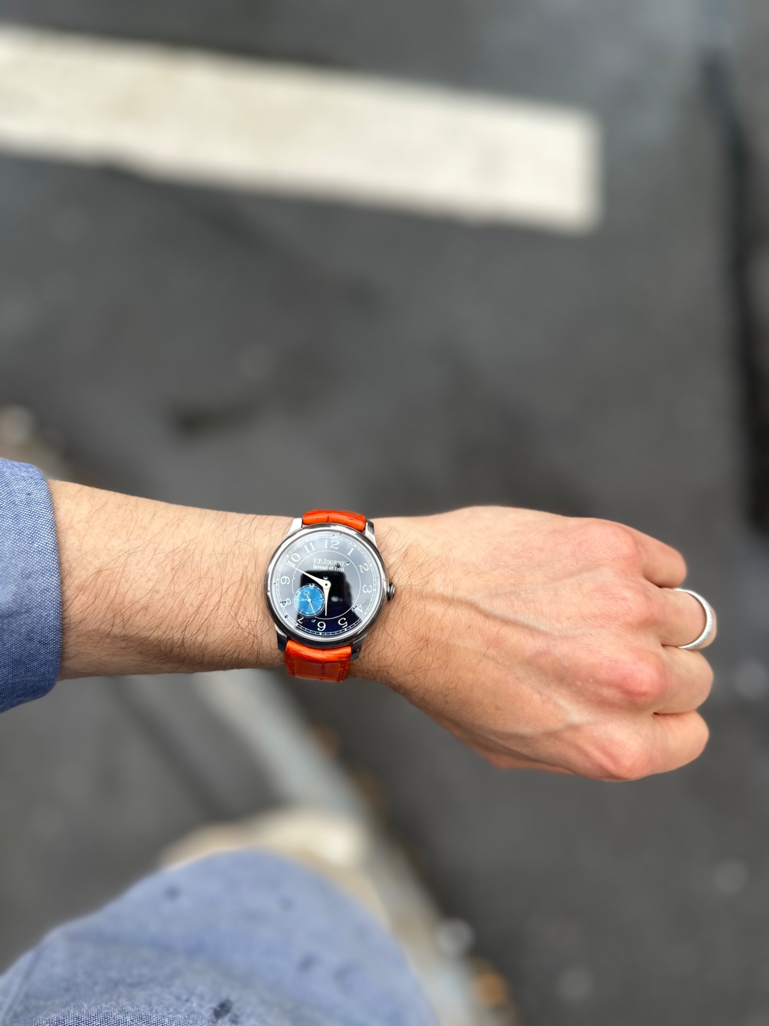 It is the perfect combination of compact package, thin, contemporary diameter that allows it to be versatile across all daily events, interesting case, fantastically enticing dial when it wants to be and a movement which pleases the eyes both in layout and choice of metal.