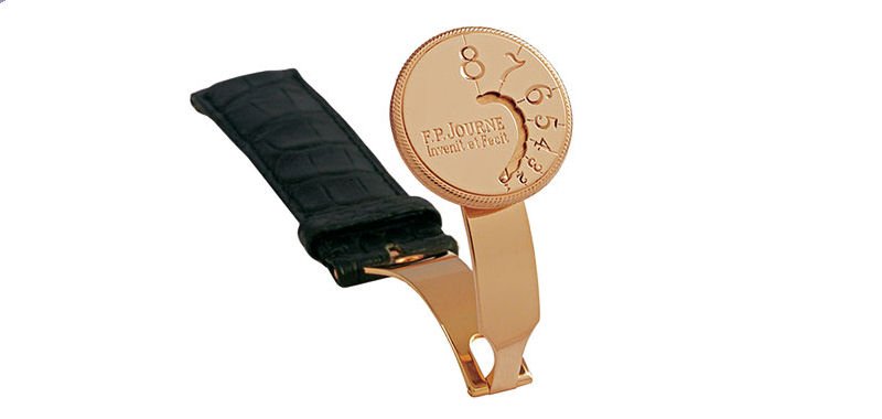The new expandable watch closure designed by Roland Iten with F.P. Journe, is a natural evolution of their mutual respect for each other. Referring to the roundness and asymmetry of the face of a F.P. Journe watch, Roland created a round buckle with a rotation mechanism which allows the pin to rest in 8 different positions (1mm apart) on the way to the center of the closure, thus giving an expansion range of 8 mm, and can be adjusted effortlessly - within the blink of an eye!
