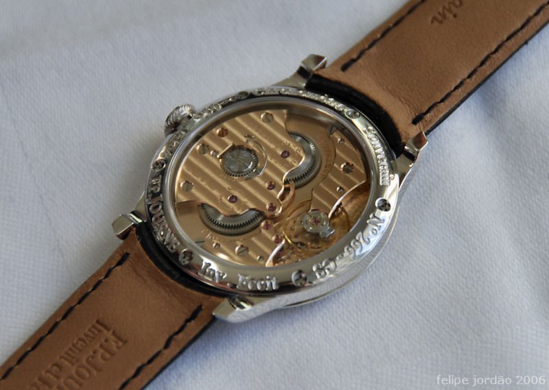 As for me, I would like to stress that the progress of Fran?ois Paul Journe soothes somehow our French heart, regretful of our "passed glorious hours of watchmaking". It is worth noticing too, that Fran?ois-Paul Journe had chosen Geneva, became again the world center of watchmaking, to settle there his company.