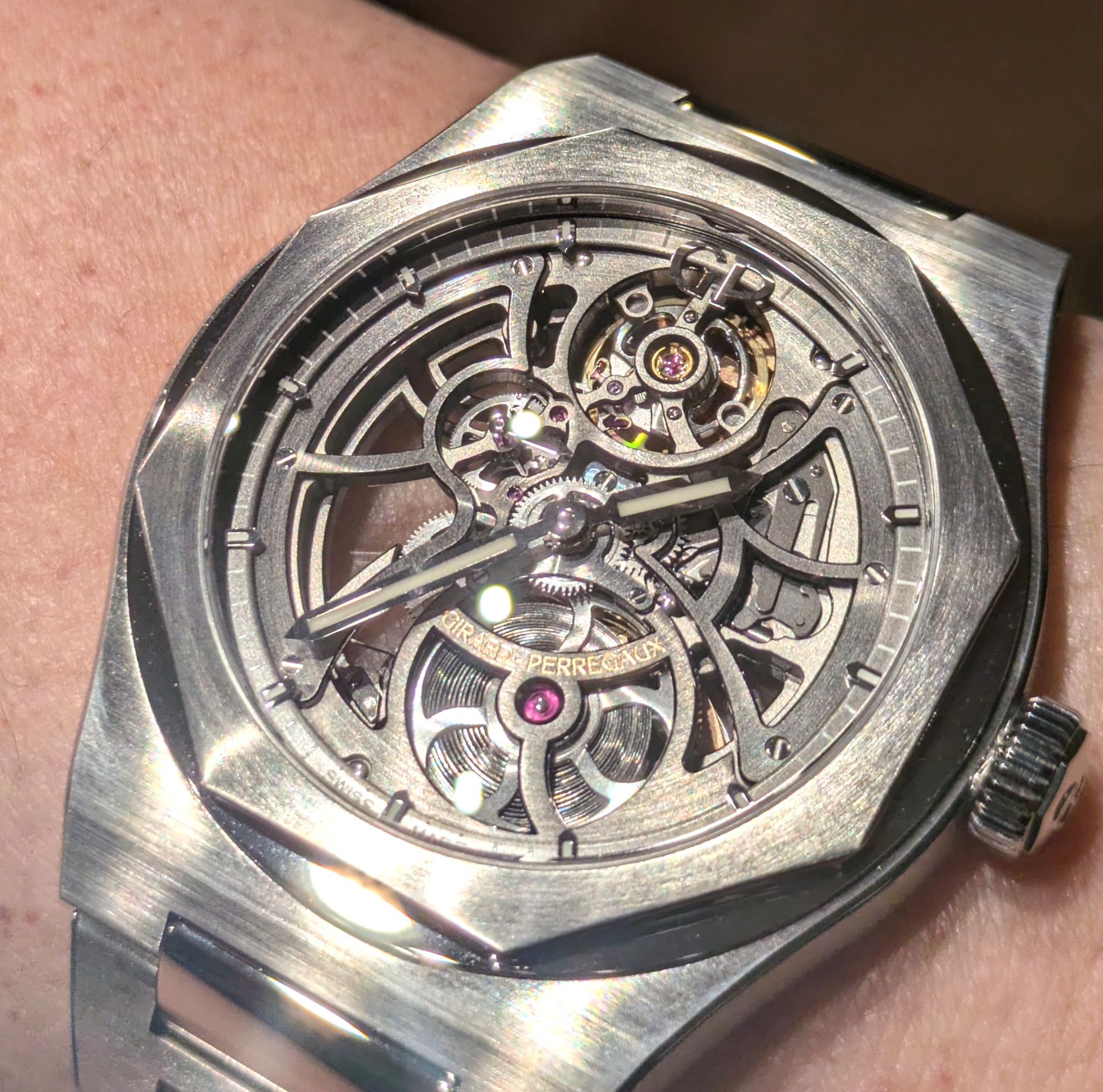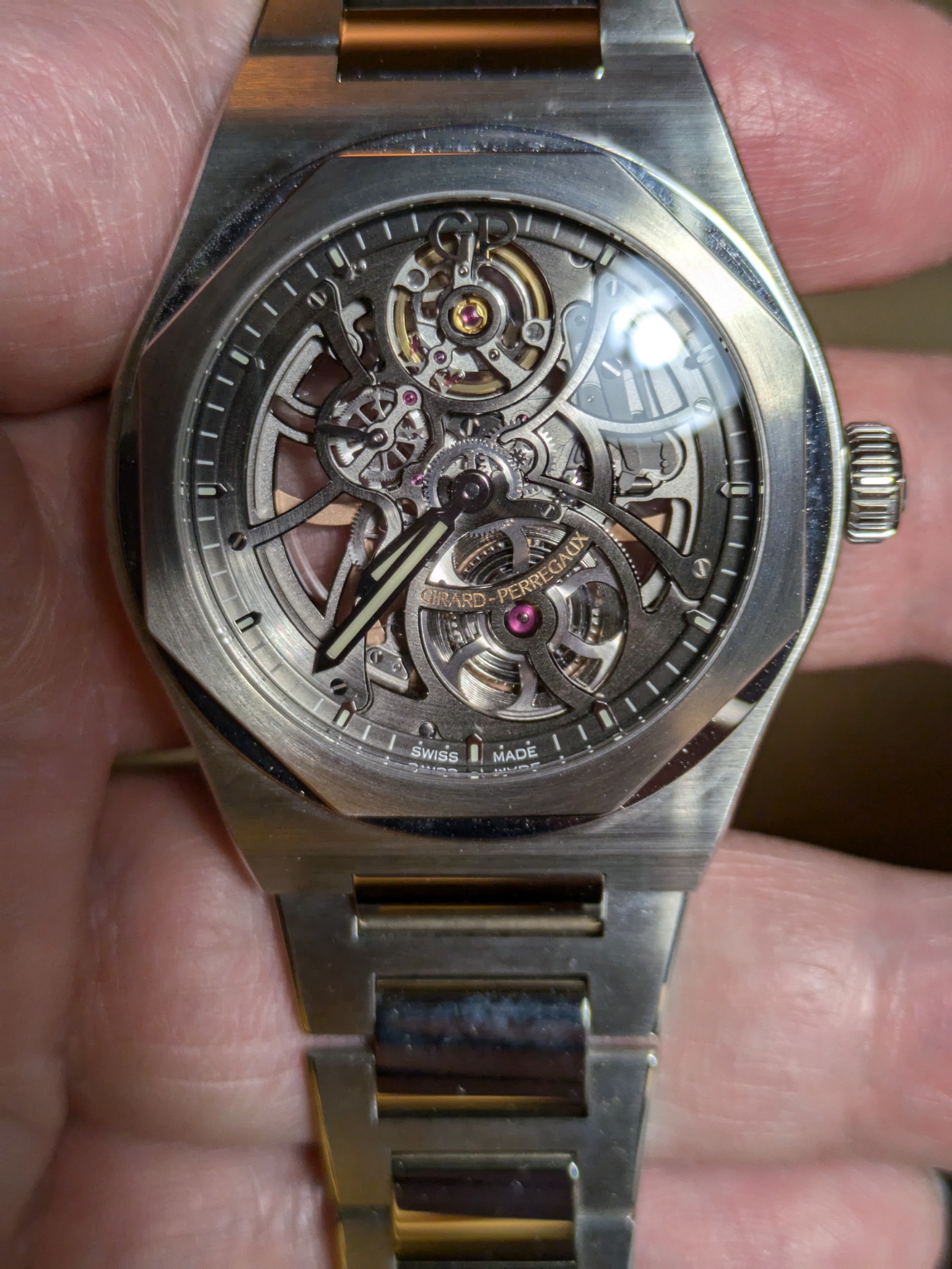 Final thoughts: The design of GP Laureato skeleton is both bold and thrilling to me. The dial plays very well against the octagonal case design. Of all my skeleton timepieces, this one has a solid spot in my heart.