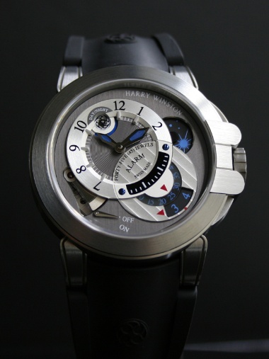 A really crazy discovery at the Harry Winston Boutique in Milano. This prototype was designed by Alain Silberstein. The nice salesman showed me the good piece with the monstrous case size of 50mm when I told him I was looking for something "special". Best