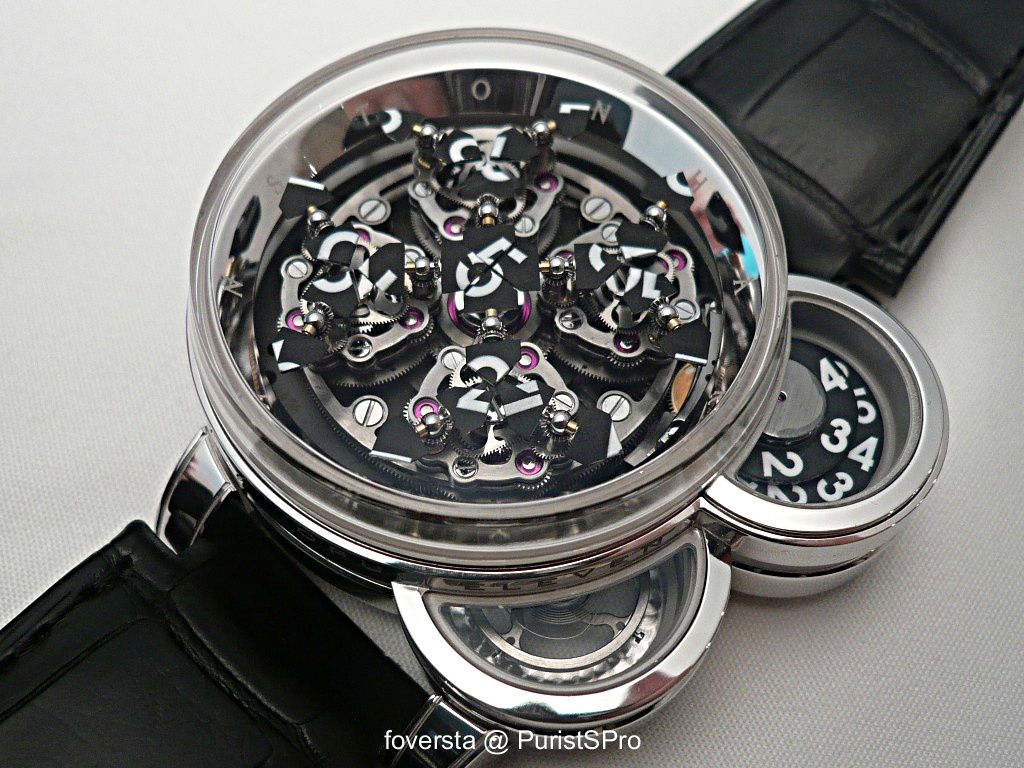 The Opus 11 looks very original but it is in fact an hommage to the Excenter watches which were (and still are) the hallmark of Harry Winston: the hour display is located on the left, the minutes on the right.