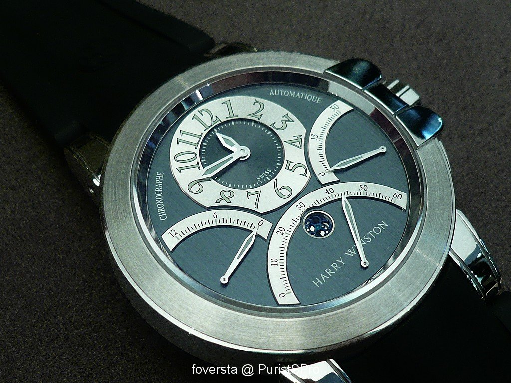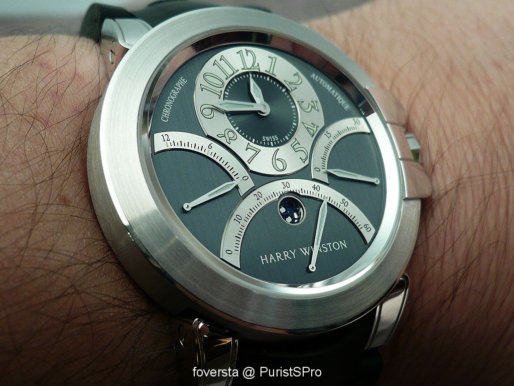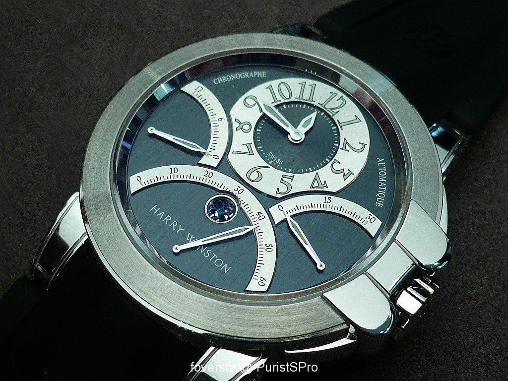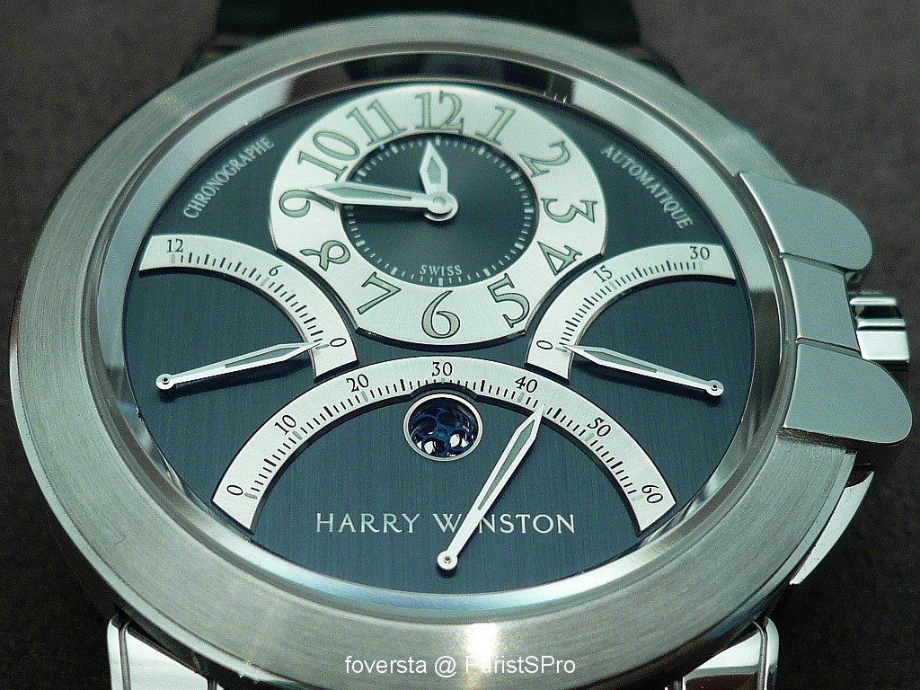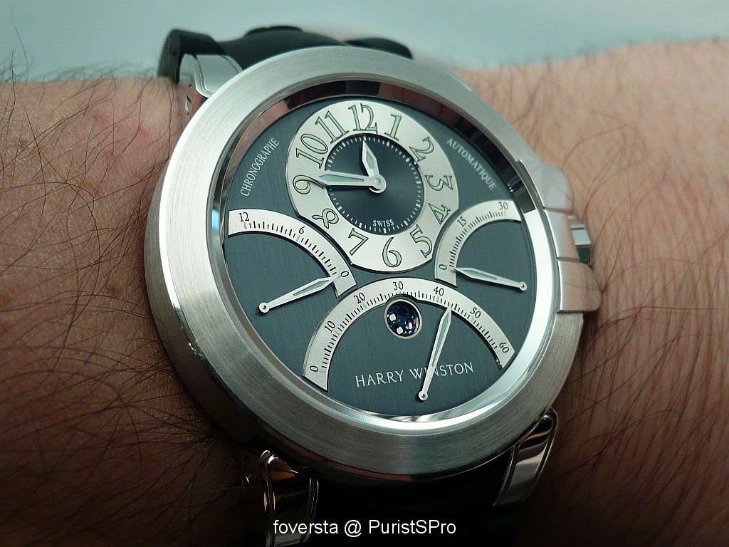 Even if the base of the movement is very well-known and not exclusive, this Ocean Chronograph seduced me thanks to its very balanced dial and the perfect integration of the pushers. These two « details » give a lot of charm to the watch. Harry Winston managed to create a watch which blends with success originality and elegancy. Moreover, the trouble of some retrograde systems is that they don't really improve the readability of the functions: it is not the case here thanks to the perfect organization of the dial.
