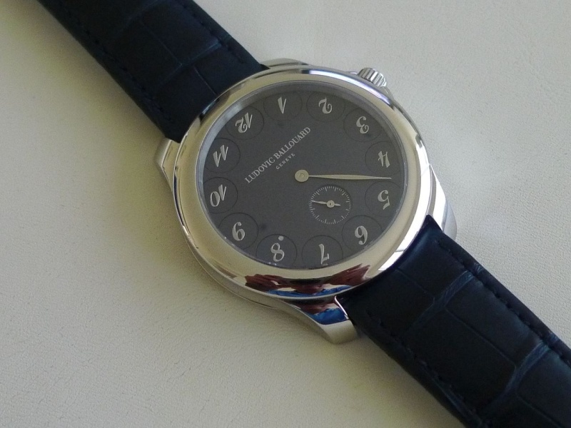Da..da..Ludovi Ballouard's Upside Down in platinum. There are a couple of threads on this watch so I won't waste time to elaborate. I do understand that at the time of writing, with the mesmerizing blue dial (instead of silver) and the applied indices (instead of print), it is a piece unique: